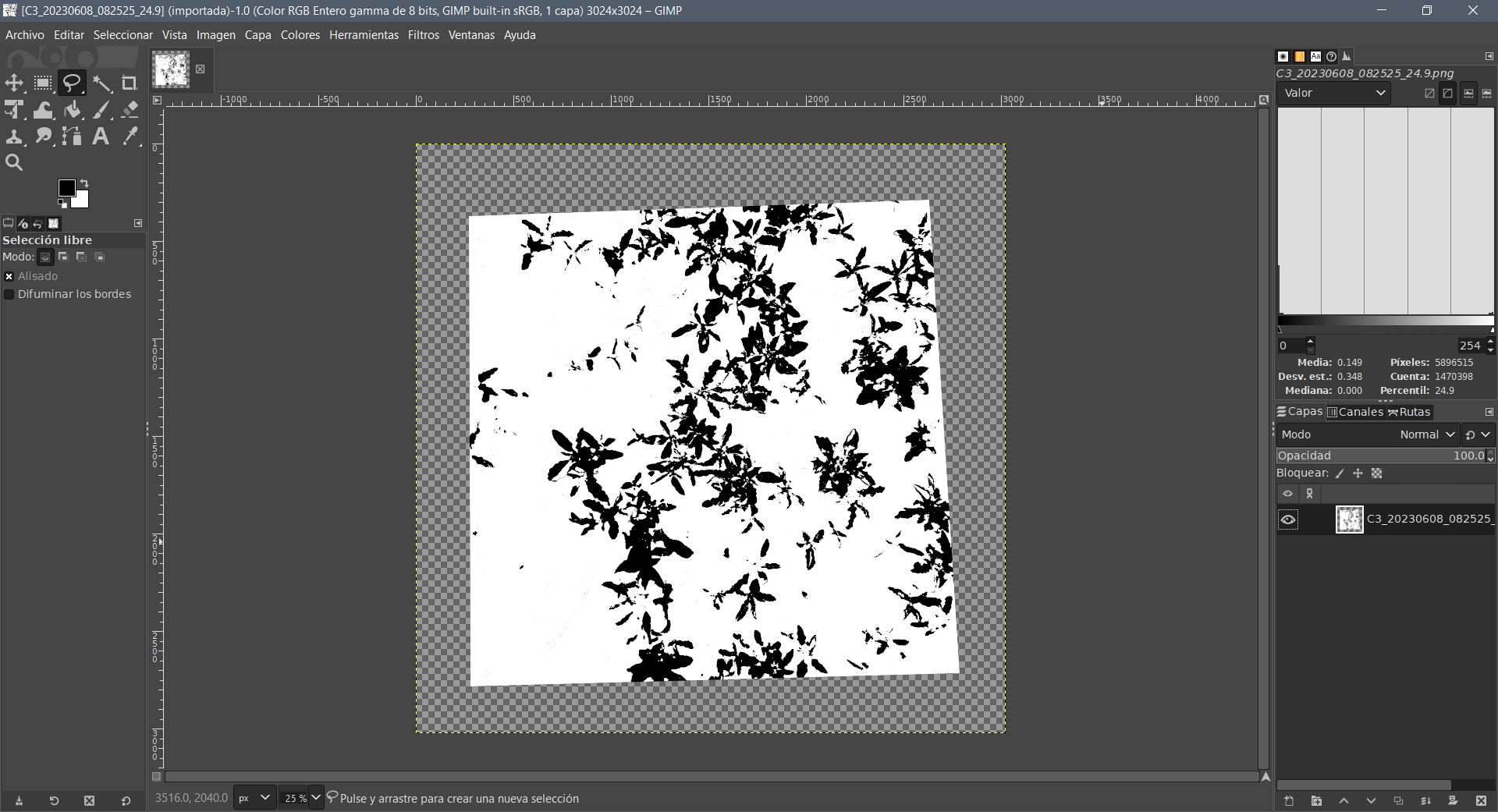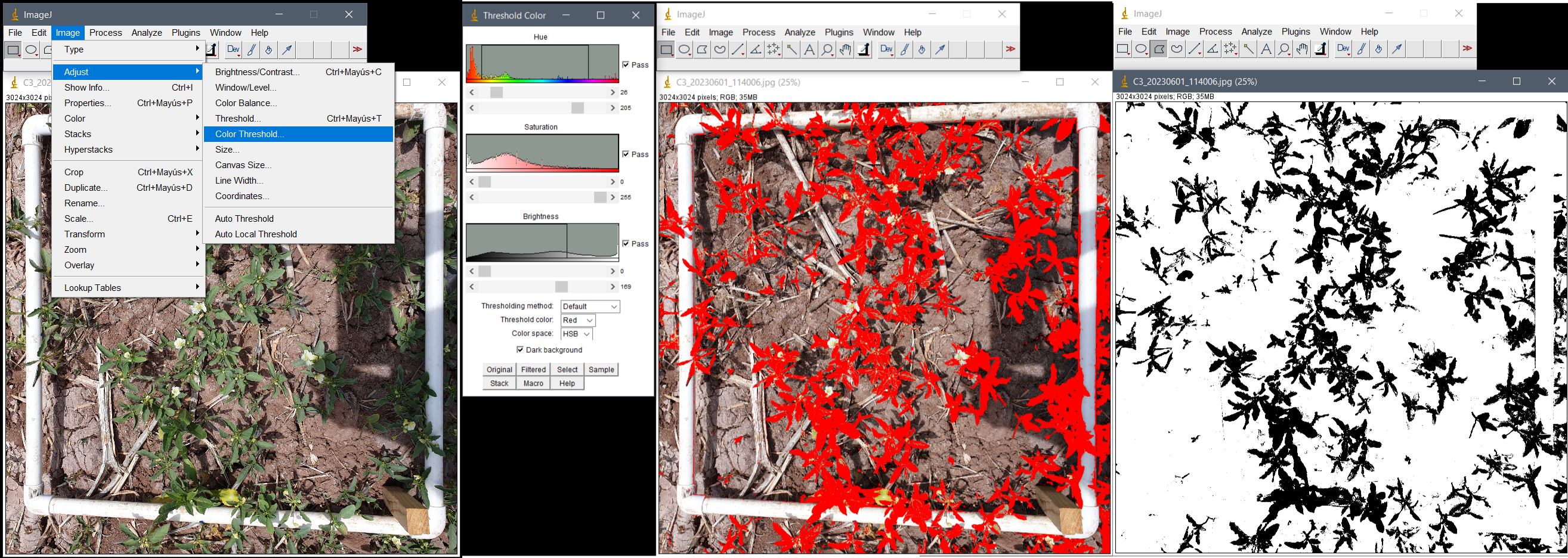 Durante el ensayo, se llevaron a cabo evaluaciones de porcentaje de cobertura y conteo de plantas de maleza en diferentes momentos, que incluyeron antes de la aplicación del herbicida, así como a los 7, 14, 21 y 28 días posteriores a la aplicación. Para complementar las mediciones tradicionales, se tomaron fotografías de cada parcela útil en cada evaluación, lo que permitió comparar los métodos convencionales con métodos basados en imágenes.